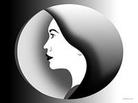 Deze vrouw zit zo te zien ergens in. Ik laat aan de kijker over waarin deze vrouw zit. In ieder geval een leuk werk dat in bijna elke kleur interieur past.