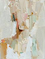 In dit kunstwerk wordt een vrouw zonder gezicht tot leven gebracht in een mix van zachte pastel kleuren en tinten, die prachtig samensmelten en een onbekende sfeer oproepen.