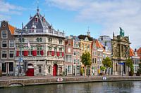 De Haarlemse Waag (1598) neemt met zijn uiterlijk op de hoek van de Spaarne-kade en de Damstraat een prominente plaats in de stad in. Het is het oudste monofunctionele schaalgebouw in Nederland.