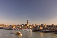 Het oude stadscentrum van Nijmegen met de rivier de Waal op de voorgrond