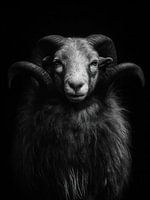 Koop dit portret "De Wachter" – Ram Portret in Zwart-Wit van Simone Photography op canvas, aluminium dibond, (ingelijste) fotoprint, behang en ArtFrame, op maat geprint in Fine-Art kwaliteit.