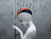 Ze zit daar, stil en zelfverzekerd — met een bundel sleutels als enige gezelschap. Haar blik is afgewend, alsof ze wacht… of bewaakt. Welke deuren heeft zij geopend? Welke nog gesloten gelaten?