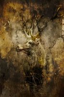 edelhert, hert kunst, natuurwanddecoratie, digitale fotokunst, bosdieren kunstwerk, verweerde achtergrond, Saranda Veld ArtWorks, warme natuurtinten, rustgevende muurdecoratie