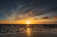 Het Wad laat zich van zijn beste kant zien in het gouden uur. De foto is gemaakt bij Westhoek, op het Friese Wad. De geulen zijn mooi te zien en het tegenlicht zorgt voor kleur op het water.