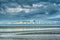 De waddenzee in de herfst op een halfbewolkte dag en bij laag water nabij het Friese kustplaatsje Paesens Moddergat.