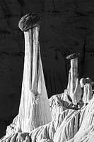 Een wonder der natuur, de prachtige Wahweap Hoodoos in zwart-wit bij zonsopgang.