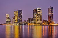 Zicht vanaf de Westerkade in Rotterdam over de Nieuwe Maas richting de Wilhelminapier met onder andere gebouw De Rotterdam, het World Port Center, Montevideo en Hotel New York. Gemaakt op een ochtend in januari tijdens het blauwe uur, hoewel door de bewolking de kleurstelling eerder paars dan blauw is.