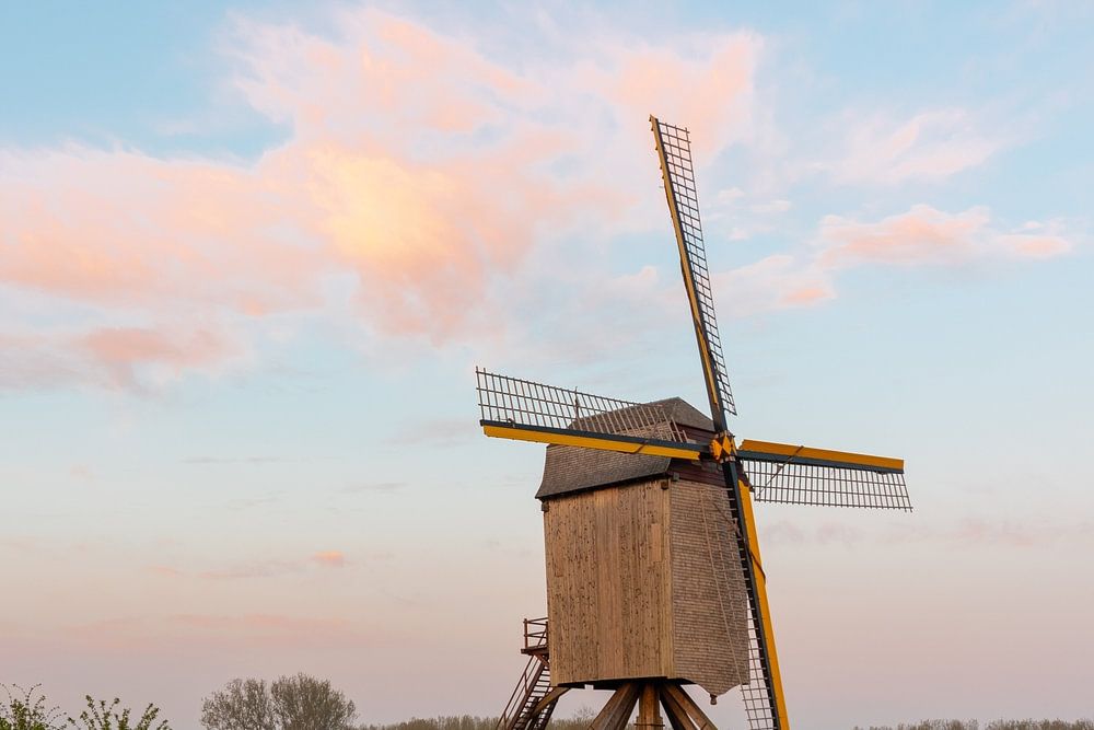 In de vroege morgen met opkomende zon staat deze mooie Windekemolen in Oosterzele te pronken.