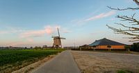 In de vroege morgen met opkomende zon staat deze mooie Windekemolen in Oosterzele te pronken.