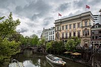 De Winkel van Sinkel aan de Utrechtse Oudegracht met een prachtige lucht op de achtergrond.