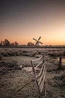 Foto van de Witte molen bij Groningen op een winterse ochtend. rijp op het land, en ijs op de sloot. Een beetje mist maakte het af. Een prachtige ochtend. De foto is gemaakt in december 2022.