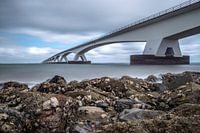 De Zeelandbrug bij laag water, Eb in de Oosterschelde van Gerry van Roosmalen