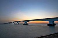 De Zeelandbrug, Zeeland (Nederland) bij zonsopkomst. De foto is gemaakt vanaf Colijnsplaat richting het Noorden. Deze foto is uit een serie van meer dan 20 stuks die ook hier op de site staan.