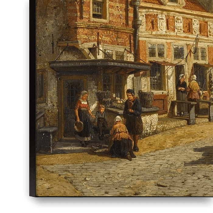 Koop De Zuiderspui met de Drommedaris, Enkhuizen, Cornelis Springer als reproductie op canvas, aluminium dibond, (ingelijste) fotoprint, behang en ArtFrame, op maat geprint in Fine-Art kwaliteit.