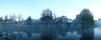 Op een mooie herfstochtend bij zonsopkomst, in het natuurgebied 'het Bossche Broek' gelegen aan de rand van het historische centrum van 's-Hertogenbosch, fotografeerde ik de Zuidwal van Den Bosch in ochtendnevel.
