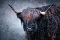 Het Schotse Hoogland Vee, de modellen onder de koeien. Altijd mooi om naar te kijken met hun mooie kapsels, indrukwekkende hoorns en liefdevolle uitdrukking. Hier is een heel speciaal meisje met zwart en rode vacht.