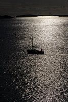 Het zeiljacht glijdt zachtjes door het Skagerrak, de horizon verlicht door de laatste gloed van de ondergang van de zon. In de felste tegenlichtsituatie verdwijnen de details van de boot, terwijl de zeilen zich omarmen in de schaduw van het vervagende licht. Wat overblijft, is een bijna zwart-witte silhouette, verlicht door warme tonen…