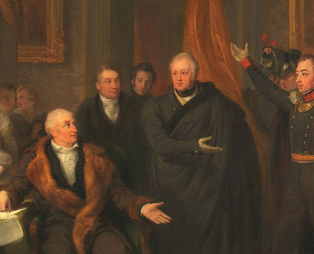 De aanvaarding van het Hoog Bewind door het Driemanschap in naam van de prins van Oranje, 21 november 1813, Jan Willem Pieneman, ca. 1828