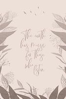 Modern grafisch ontwerp met een milieubewust, duurzaam statement. The earth has music for those who listen. De aarde heeft muziek voor hen die luisteren. Vergeet gewoon het leven van alledag en ontspan in de natuur met al uw zintuigen.