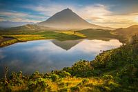 Een foto van de Pico Vulkaan vanaf Lagoa do Capitão is een prachtig aandenken aan de ongerepte en ruige schoonheid van de Azoren. Deze afbeelding vangt niet alleen de essentie van het eiland Pico, maar ook de unieke en tijdloze pracht van dit vulkanische landschap.