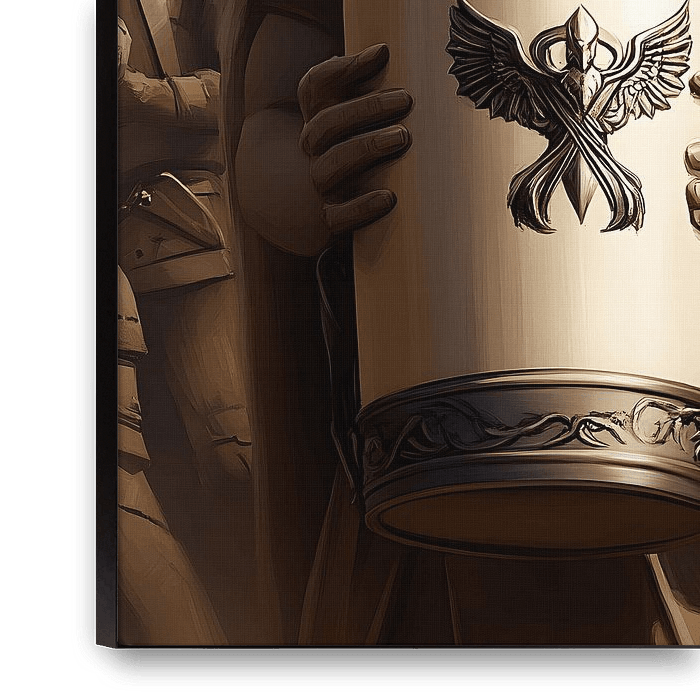 "The Oathbearer" is een krachtig eerbetoon aan eer, nalatenschap en onwrikbare vastberadenheid. In dit majestueuze digitale kunstwerk houdt een nobele krijger een grote ceremoniële oorlogstrommel vast, versierd met een embleem van gekruiste vleugels en een waakzaam zwaard - symbolen van eenheid en standvastige verdediging. Gewikkeld in…