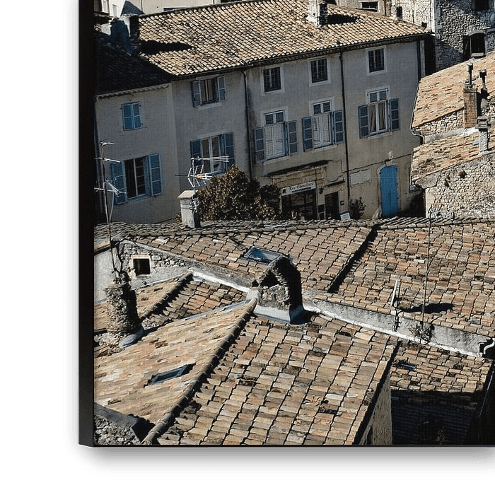 Vanaf de hoogten boven Viviers onthult een schilderachtig panorama de okerkleurige en rode pannendaken die typisch zijn voor deze historische stad. De stenen huizen lijken bevroren in de tijd en getuigen van de eeuwenoude geschiedenis van het dorp, terwijl de beboste heuvels zich uitstrekken tot aan de horizon.
