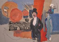 De heer M Faucaud, vriend van Henri. Een hedendaagse collage gemaakt van papier, karton en knipsels van werken van de bekende franse impressionist Henri de Toulouse-Lautrec beschilderd met olieverf. Een homage aan Toulouse-Lautrec.