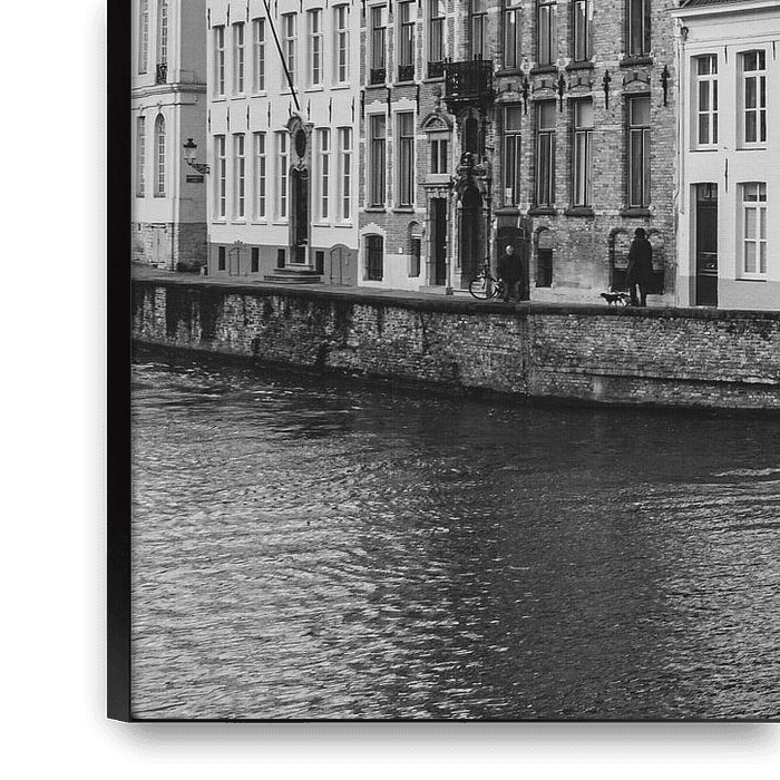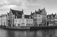Zwartwitversie van de trapgevelhuisjes langs de Spiegelrei in Brugge.