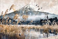 Met behulp van traditionele Japanse aquareltechnieken brengt dit landschapschilderij de serene majesteit en tijdloze pracht van de berg Fuji bij je thuis. Ideaal voor natuurliefhebbers en fans van Japanse kunst die een vredige en inspirerende sfeer willen creëren.