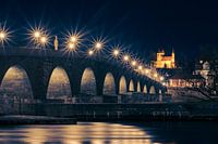 Koop de foto De beroemde Stenen Brug over de rivier de Donau in Regensburg, Beieren bij nacht met prachtige zon-s van Robert Ruidl op canvas, aluminium dibond, (ingelijste) fotoprint, behang en ArtFrame, op maat geprint in Fine-Art kwaliteit.