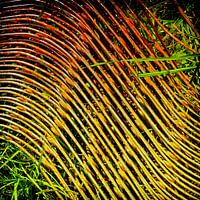 Afbeelding nr. 21 uit de serie "Schoonheid van verval": S-vormige gebogen roestige draden als wapening voor gewapend beton