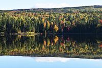 De bezinning van de herfst op het meer, Sainte-Apolline, Québec, Canada