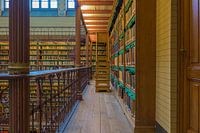 Dit werk toont de rechterkant van de 1e etage van de bibliotheek van het Rijksmuseum, gezien vanaf de balustrade.