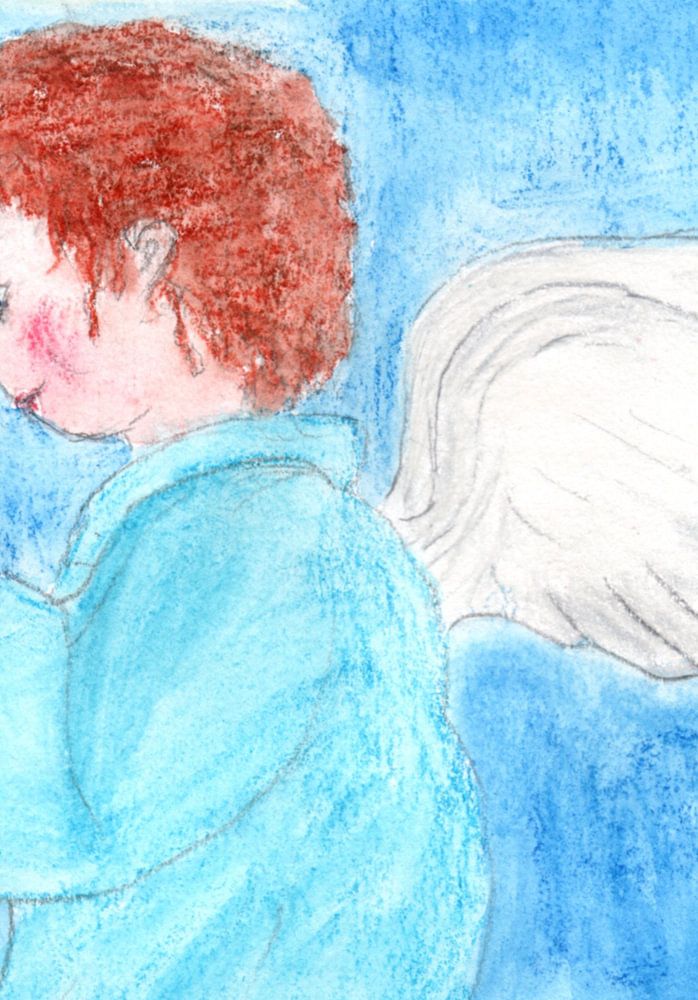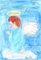 Deze schattige aquarel toont een biddende engel zittend op een wolk