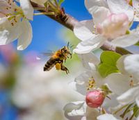 Koop dit bloemen kunstwerk De bij vliegt naar een witte appelbloesem van ManfredFotos op canvas, aluminium dibond, (ingelijste) fotoprint, behang en ArtFrame, op maat geprint in Fine-Art kwaliteit.