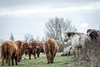 Schotse hooglanders in het duingebied Lentevreugd bij berkheide tussen Wassenaar en Katwijk aan Zee. Het gebied wordt beheert door Dunea en Staasbosbeheer. De kudde koeien groeit gestaag en het is ieder jaar weer geweldig om de kalfjes te zien komen en te zien opgroeien. Schotse hooglanders in het duingebied berkheide tussen Wassenaar en Katwijk aan Zee. Het gebied wordt beheert door Dunea en Staasbosbeheer. De Schotse hooglander (Schots-Gaelisch: Bò Ghàidhealach; Schots: Heilan coo), ook wel Highland Cow genoemd, is een meestal roodbruin runderras dat oorspronkelijk uit Schotland komt. Ze hebben lang haar en lange horens.