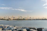 De onvoorstelbaar mooie en bizarre Skyline van Dubai. Één van de Verenigde Arabische Emiraten.