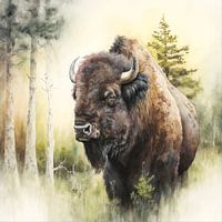 Het dier is zwaargebouwd met een hoge schouderbult, een grote zware kop, een korte dikke nek en een breed voorhoofd. Kop, nek, schouders en voorpoten zijn lang en ruig behaard. De rest van het lichaam is bedekt met korter en lichter haar. De kin bevat een verwilderde baard. Het dier heeft een schouderhoogte van 1,90 meter en de lengte van de stier is bijna 3 meter. De staartlengte bedraagt 30 tot 60 cm. De bizon kan een snelheid tot 50 km/u halen.