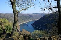 Als je op de Lorelei-rots bij Sankt Goarshausen in Duitsland staat, heb je een prachtig uitzicht over de Rijn. Schepen moeten hier heel voorzichtig zijn, want er zijn een paar vervelende bochten.