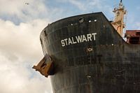 De boeg de mast Het anker en een hoek van een dekluik van een ruim. De lasnaden van de huidplaten van de romp. De eenzame meeuw aan de mooie wolkenlucht. De overgeschilderde naam onder de nieuwe zwarte verf. En de mooie roest sporen waar het zoute water de verf aangetast heeft. Dit is een…