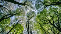 Even de camera omhoog richten in het bos kan ook leuke foto's opleveren. Deze werd genomen in het Hallerbos te Halle. De jonge blaadjes zorgen voor een prachtige groene kleur die mooi past bij het blauwe van de lucht. De takken als grijparmen om al dat groen vast te houden.