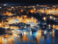 "Ervaar de boulevard in al zijn glorie met dit prachtig vervaardigde kunstwerk. De levendige impasto-techniek brengt de textuur van gebouwen tot leven, terwijl abstracte elementen een mysterieuze diepte toevoegen aan het nachtelijke kustlandschap. Met bedachtzaam gebruik van de dry brush-techniek worden de lichten van de stad subtiel geaccentueerd, waardoor een betoverend schouwspel van schaduwen en glinsterende lichtjes ontstaat. Deze hemelse weergave van een de boulevards bij avond brengt een unieke sfeer in elke ruimte.