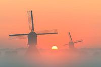 Een prachtige mistige ochtend waarbij de molens net boven de mist uitkomen. Dit samen met de mooie kleuren van de mooie zonsopkomst.