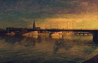 Tegen de avond kleuren de lucht en de rivier de Maas goudgeel. Maastricht.