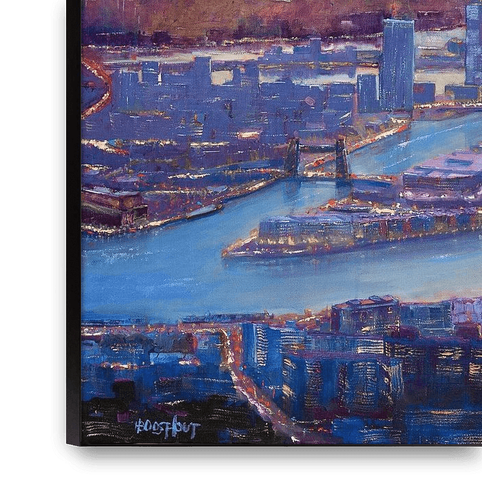 Jouw gekozen kunst op doek, gespannen in een aluminium frame. Snel en eenvoudig te verwisselen voor een frisse uitstraling en helemaal zoals jij het wilt.