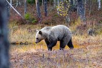 Struinend op zoek naar voedsel loopt de beer door het Finse landschap. Zeker in de herfst wanneer ze zich voorbereiden op de winterslaap lopen ze regelmatig rond.