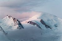 De oostelijke heuvelrug van de Mont Blanc en de Mont Maudit links daarvan maken deel uit van een van de routes om het dak van Europa te beklimmen. Bij het eerste licht van de dag zijn de klimmers al ver gevorderd en kun je er 7 onderscheiden op deze route en 10 op de tegenoverliggende route op de westelijke bergkam (uiterst rechts op de…