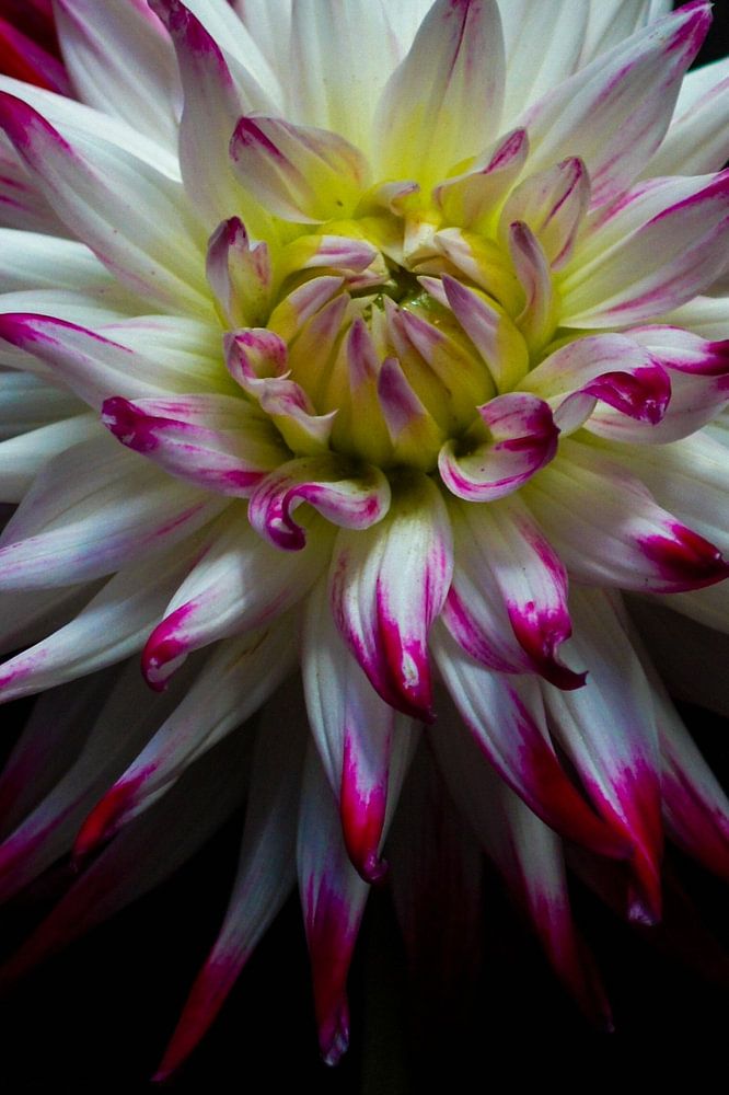 Mooie zwarte achtergrond met de kleurrijke dahlia
