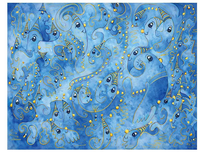 Koop de illustratie De dans van de waterwezens van Renate Sell als print op canvas, aluminium dibond, (ingelijste) fotoprint, behang en ArtFrame. Voor jou op maat geprint in Fine-Art kwaliteit.