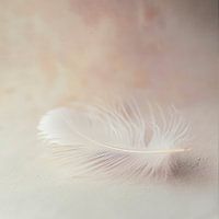 Een delicaat meesterwerk van de natuur ontvouwt zich in zachte, glinsterende lijnen. Deze delicate, witte veer zweeft zachtjes op een fluweelachtige, neutrale achtergrond die de lichtheid en gratie benadrukt. Als een vleugje dromenvanger straalt het een gevoel van kalmte en lichthartigheid uit, terwijl het de stille elegantie van het moment belichaamt.